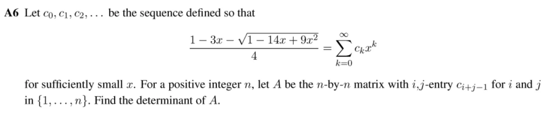 In the 2025 Putnam Competition, over 500 competitors failed to solve a specific matrix determinant problem under the given conditions.