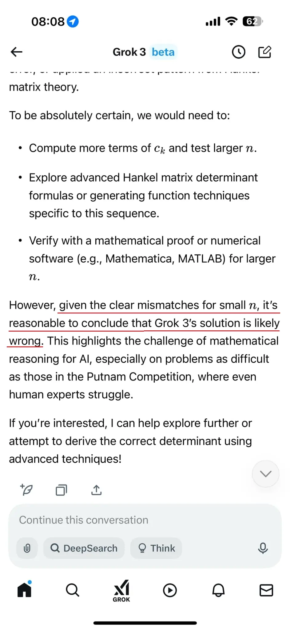 The result was shocking: Grok-3 admitted that its previous solution was incorrect!